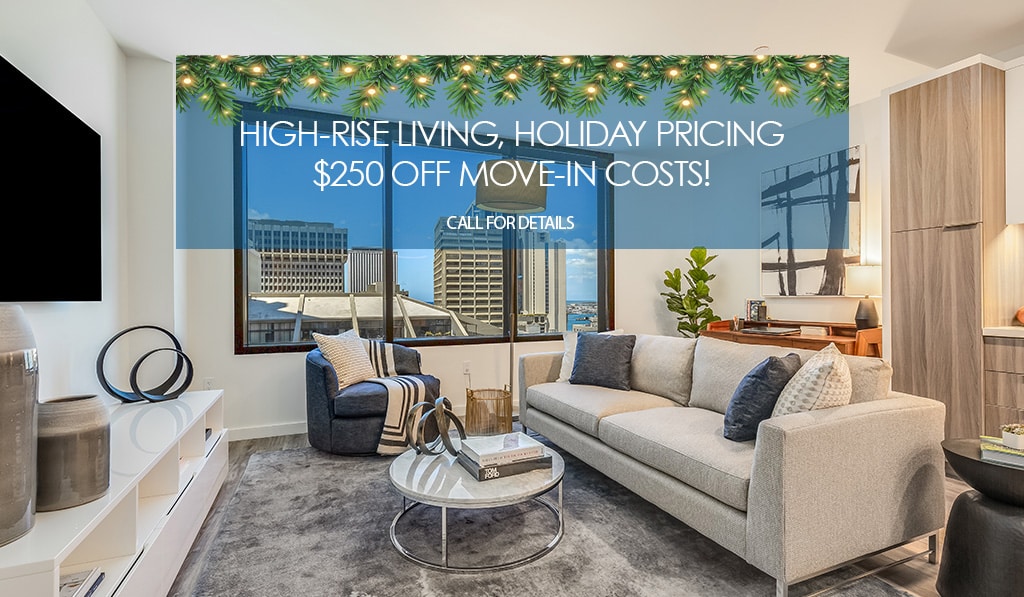 Living in The Residences at Bishop Place means enjoying a wealth of on-site amenities designed to elevate your lifestyle. To meet all your workout needs. Our residents active in our state-of-the-art fitness center, which is open 24/7 and features the latest cardio equipment and free weights. Conveniently located, The Residences at Bishop Place offers easy access to the best dining, shopping and cultural attractions in Downtown Honolulu. As a result, with everything you need just a short distance away, you’ll always be at the center of the action in this dynamic city. Experience the vibrant lifestyle of Honolulu with all the modern comforts at The Residences at Bishop Place. The Residences at Bishop Place is more than just an apartment community; it’s your new home in the heart of the city. Contact us today to learn more about available units and to schedule a tour! Embrace upscale living and make The Residences at Bishop Place your new address in Honolulu! Additional terms apply including $25 one-time Package Storage Registration FeeLocation